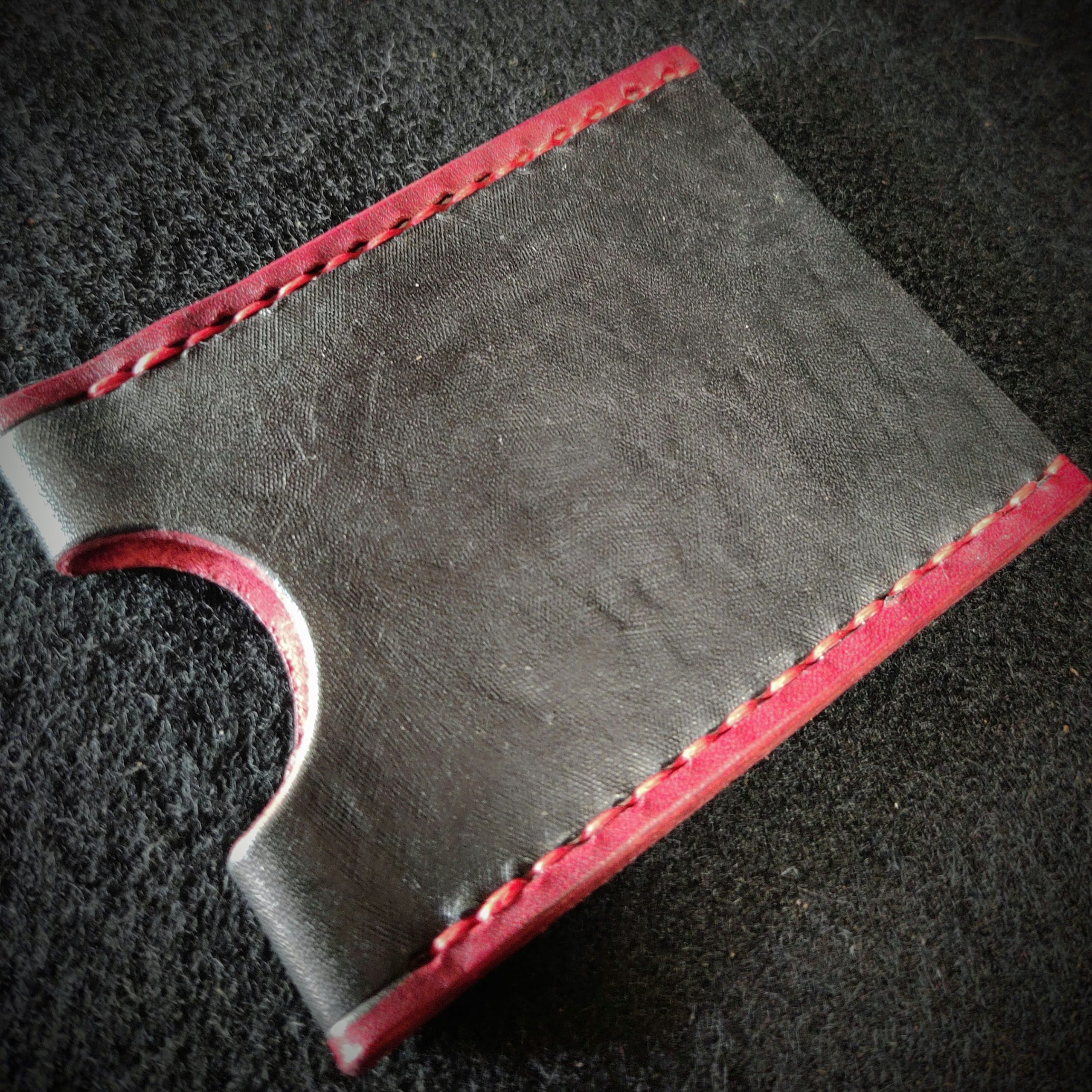 • Hand-stitched in red thread – striking contrast for bold style